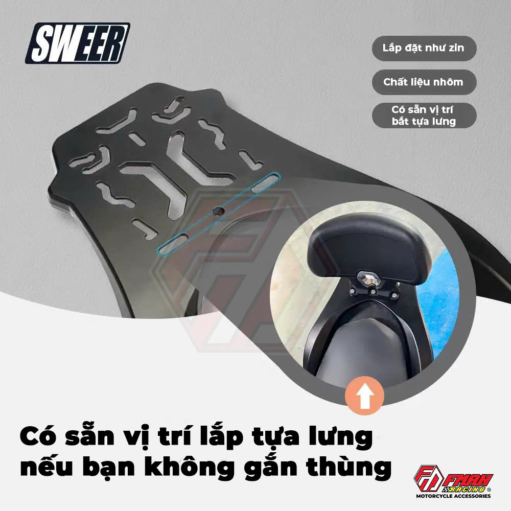 • Tăng cường chịu tải: Kết cấu dày dặn, chắc chắn, chịu được tải trọng lớn, phù hợp gắn thùng Givi, thùng nhôm hoặc chở hàng nặng.