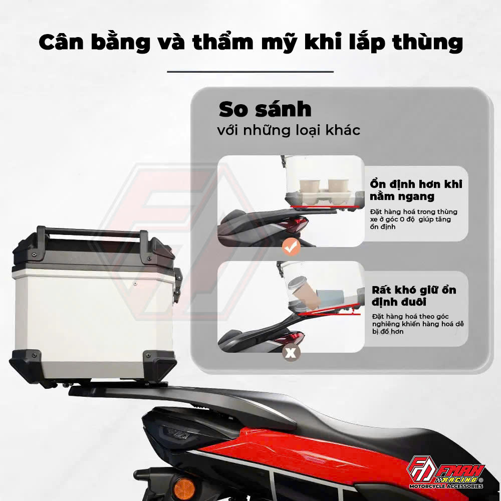 • Nhiều điểm bắt ốc hơn, tăng độ chắc chắn khi gắn thùng lớn.