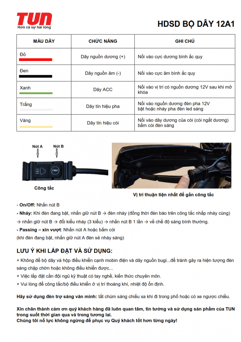 BỘ DÂY NỐI CÔNG TẮC LED TUN 12A1 CHÍNH HÃNG