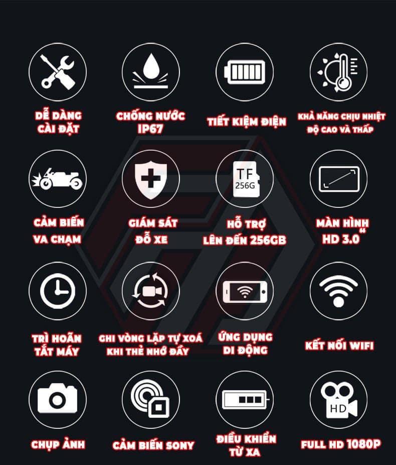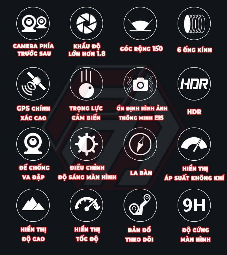 -Công nghệ: Định vị, map, đo tốc độ, lưu video, chống rung, chống nước, cảnh báo va chạm IP67 v..v. Tuỳ phiên bản sẽ có chức năng cao hơn!