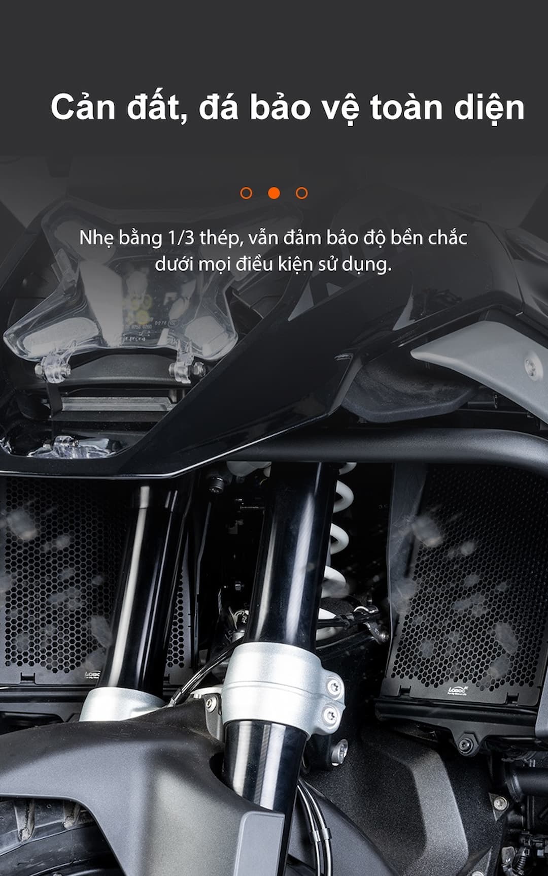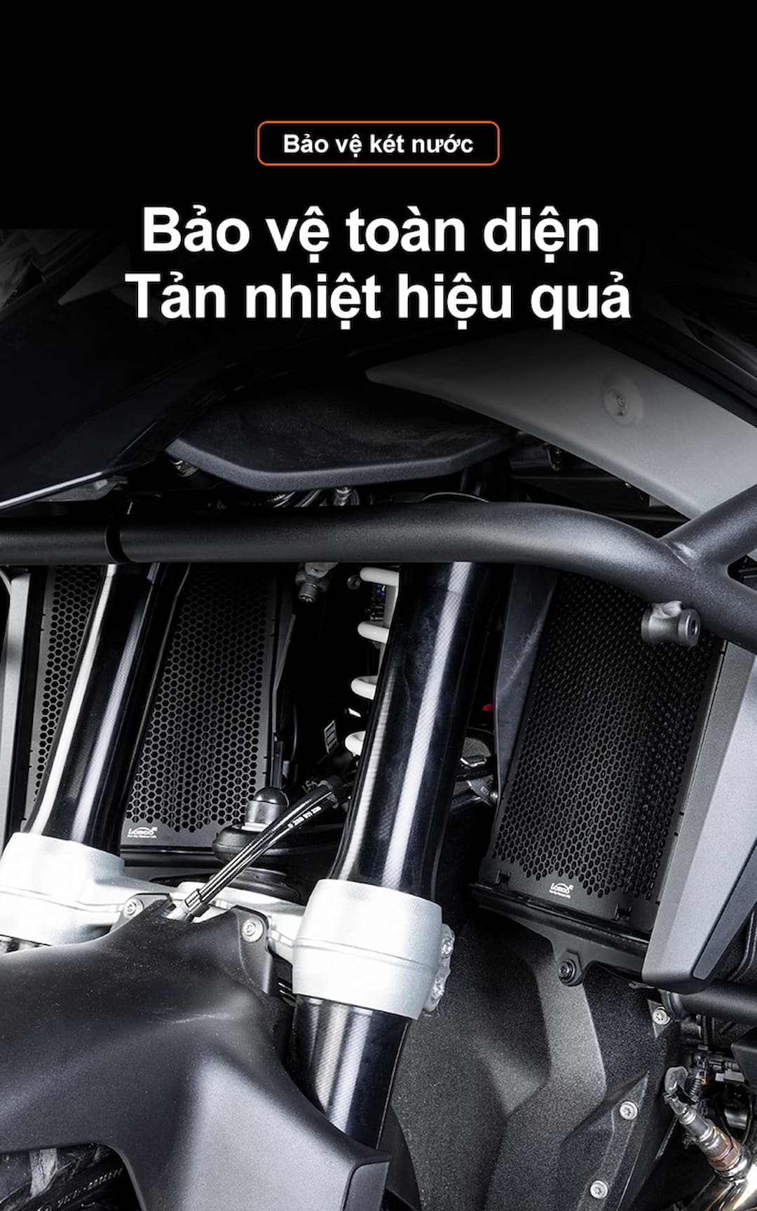 Bảo vệ két nước Loboo BMW R1300 GS là phụ kiện quan trọng giúp bảo vệ két nước xe khỏi đá văng, bụi bẩn và va đập trong quá trình di chuyển, đặc biệt là khi đi tour đường dài.