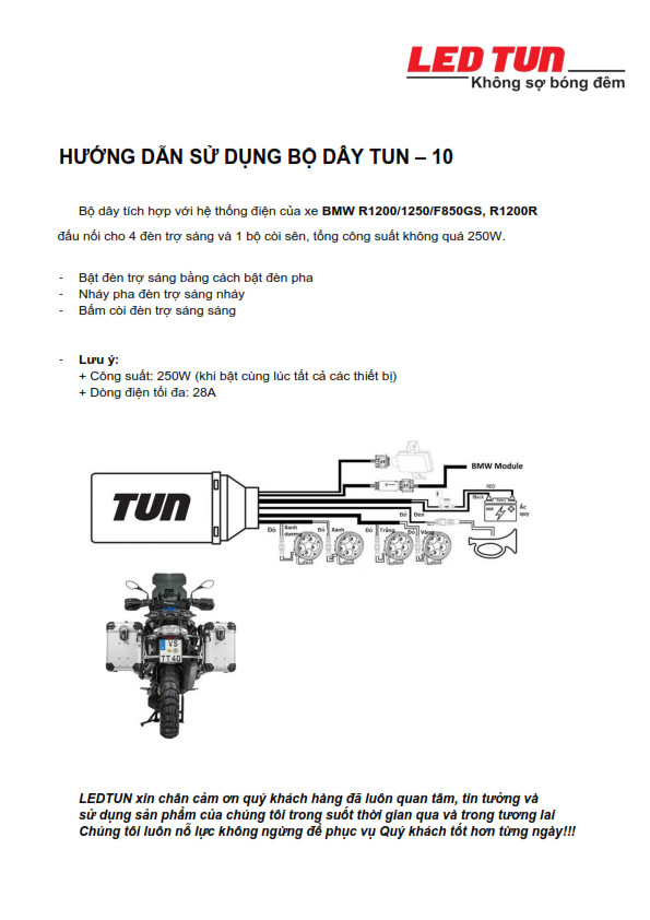 TUN - 10: Bộ dây lắp đèn trợ sáng tích hợp với hệ thống điện của xe BMW R1200/1250/F850GS, R1200R...
