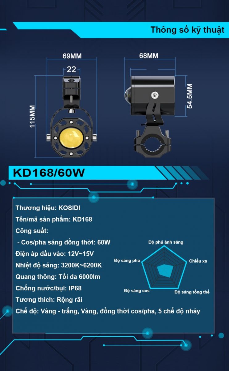 KD168 : 3 chế độ sáng , 4 kiểu nháy - passing