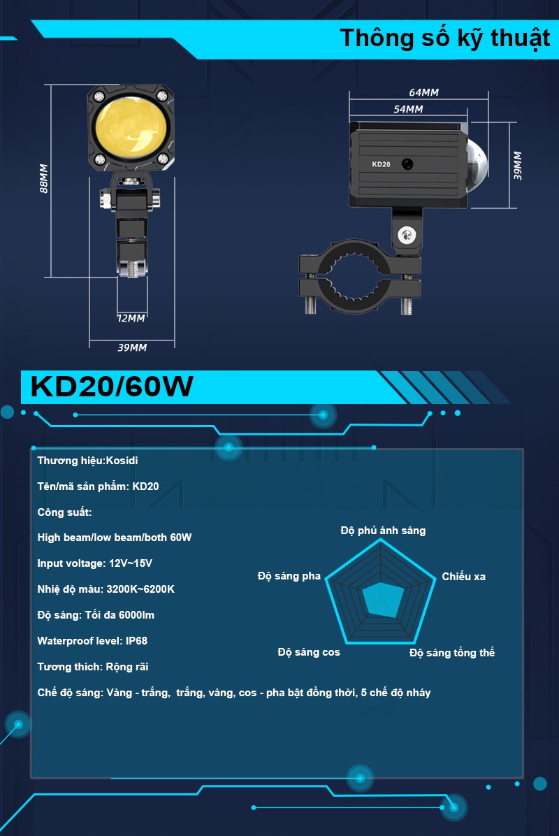 ĐÈN LED TRỢ SÁNG KOSIDI KD20 CHÍNH HÃNG