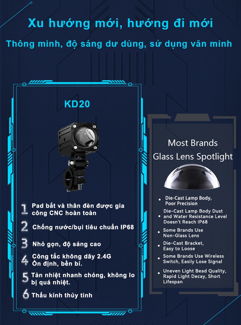 KD20 : 3 chế độ sáng , 4 kiểu nháy - passing