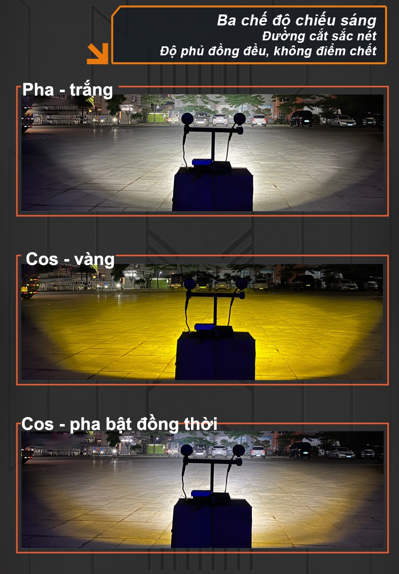 -Độ sáng : pha 7000lm/cặp, cos 5500lm/cặp, pha + cos 7000lm/cặp