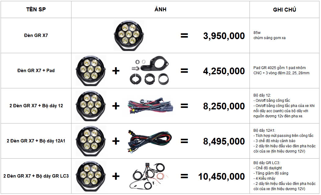 ĐÈN TRỢ SÁNG GR X7 CHÍNH HÃNG