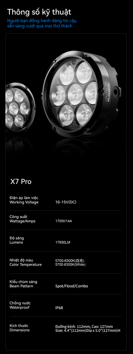 Đèn trợ sáng GR X7 Pro chính hãng - TUN 70 NEW