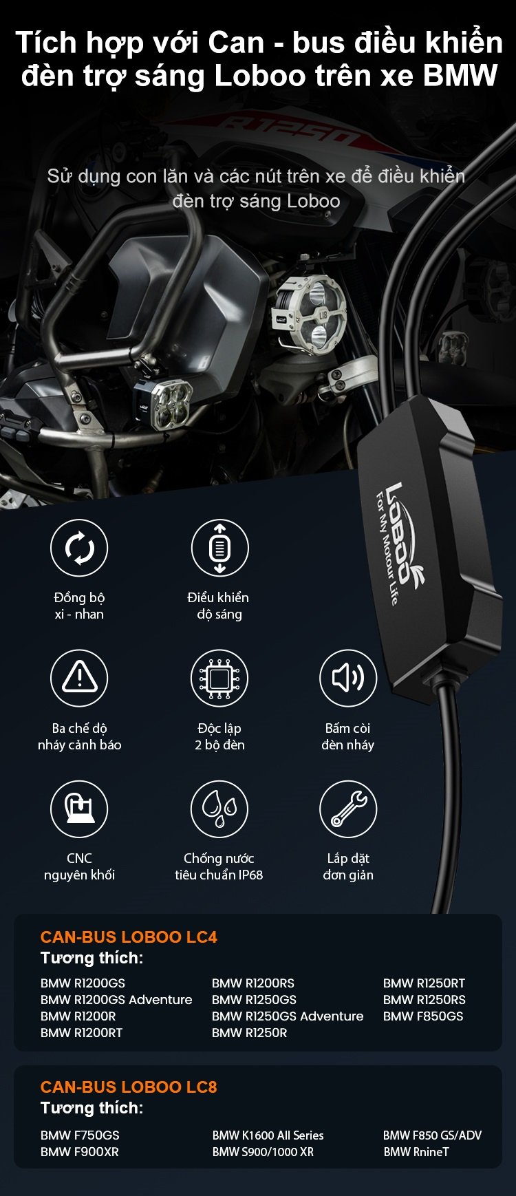 -Tích hợp với Canbus điều khiển đèn trợ sáng BMW.