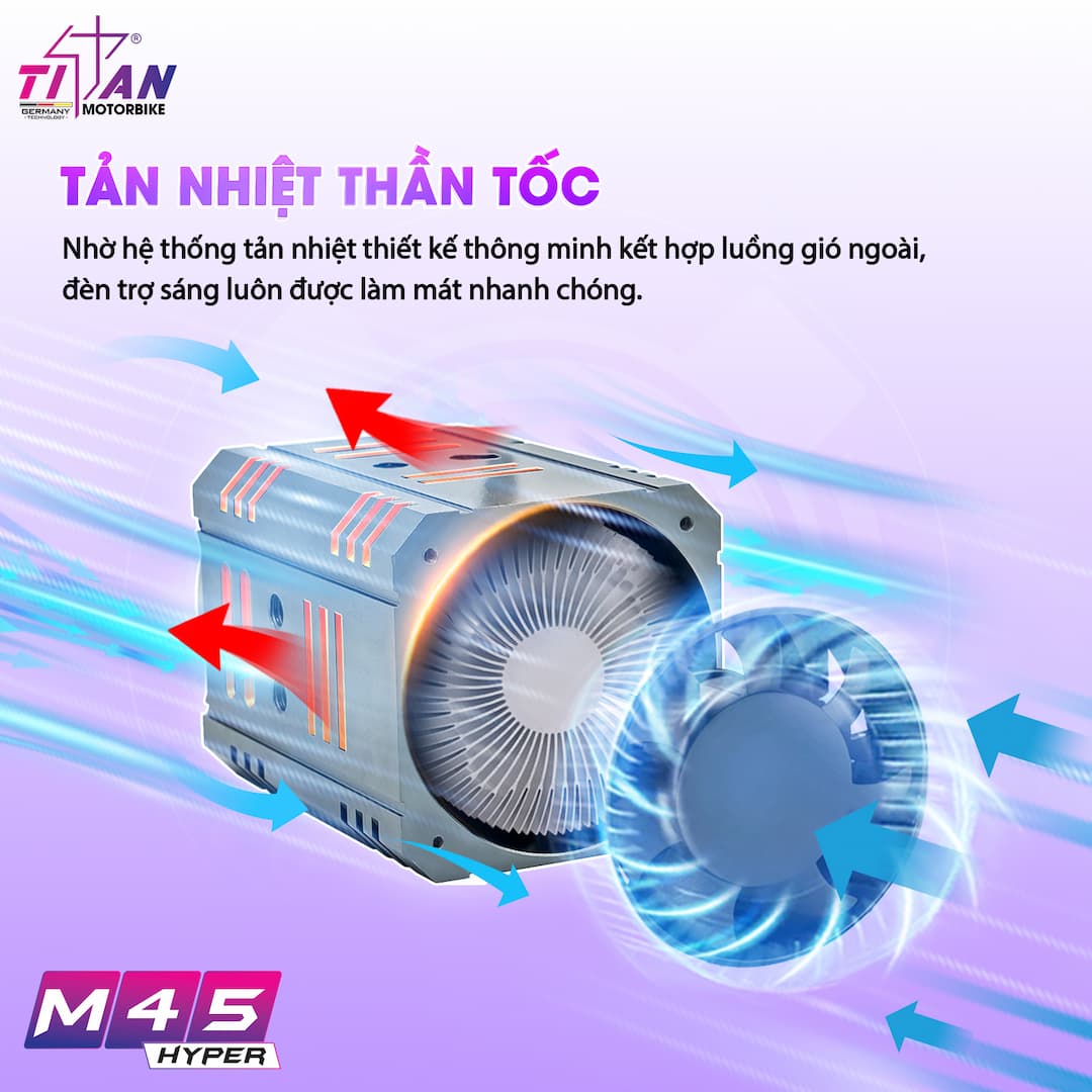 Titan Moto M45 Hyper thiết kế thông minh, kết hợp công nghệ tản nhiệt chủ động và tản nhiệt thụ động giúp sản phẩm đạt độ bền cao.