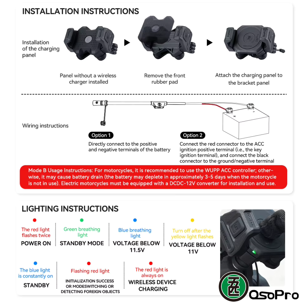 Tích hợp sẵn cổng sạc điện thoại (tuỳ phiên bản), dây điện chống nước chuẩn moto, phù hợp lắp mọi thời tiết.