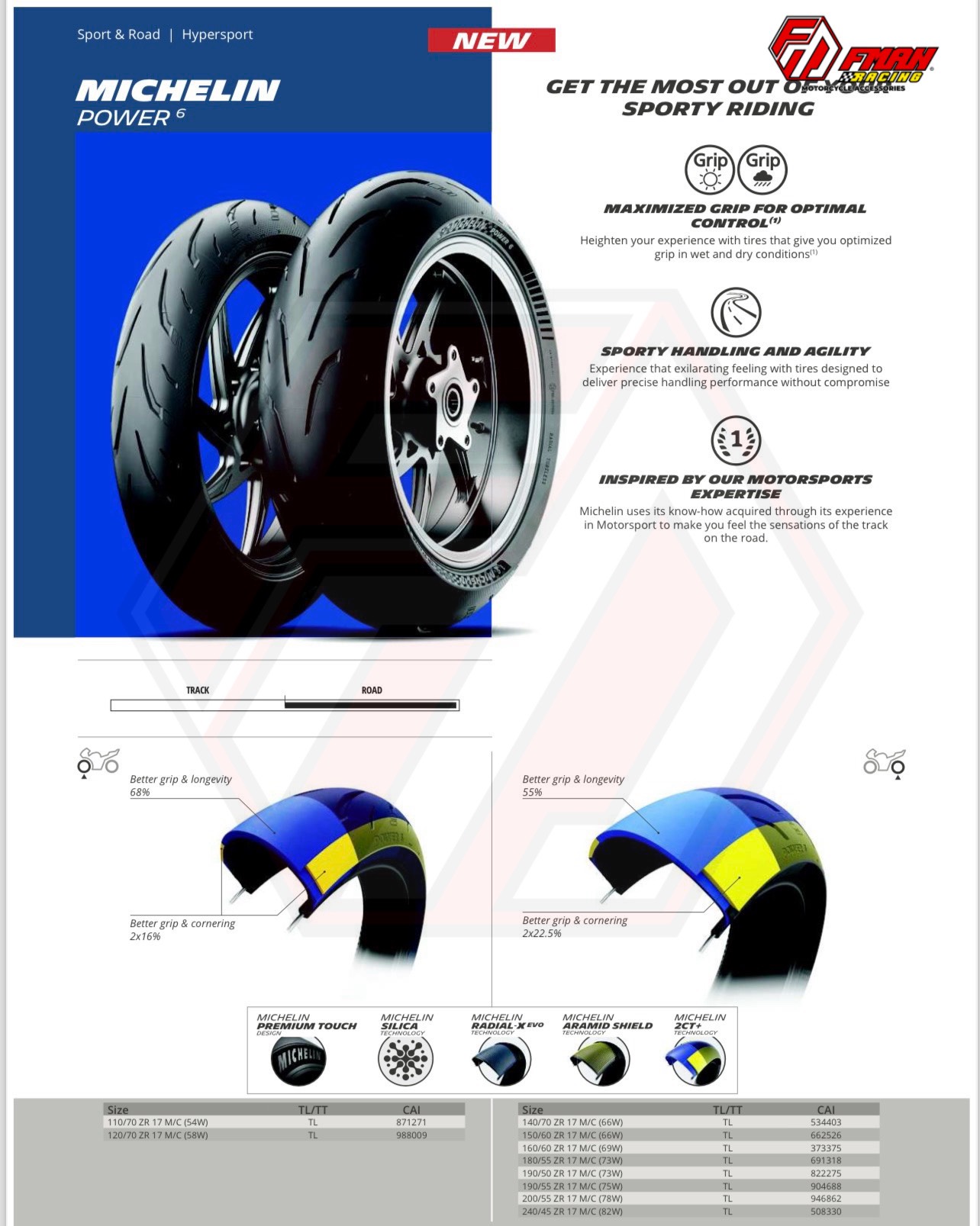 Michelin Power 6 là sự lựa chọn lý tưởng cho những người đam mê tốc độ và hiệu suất cao, cung cấp sự an toàn và ổn định tuyệt đối trong mọi hành trình.