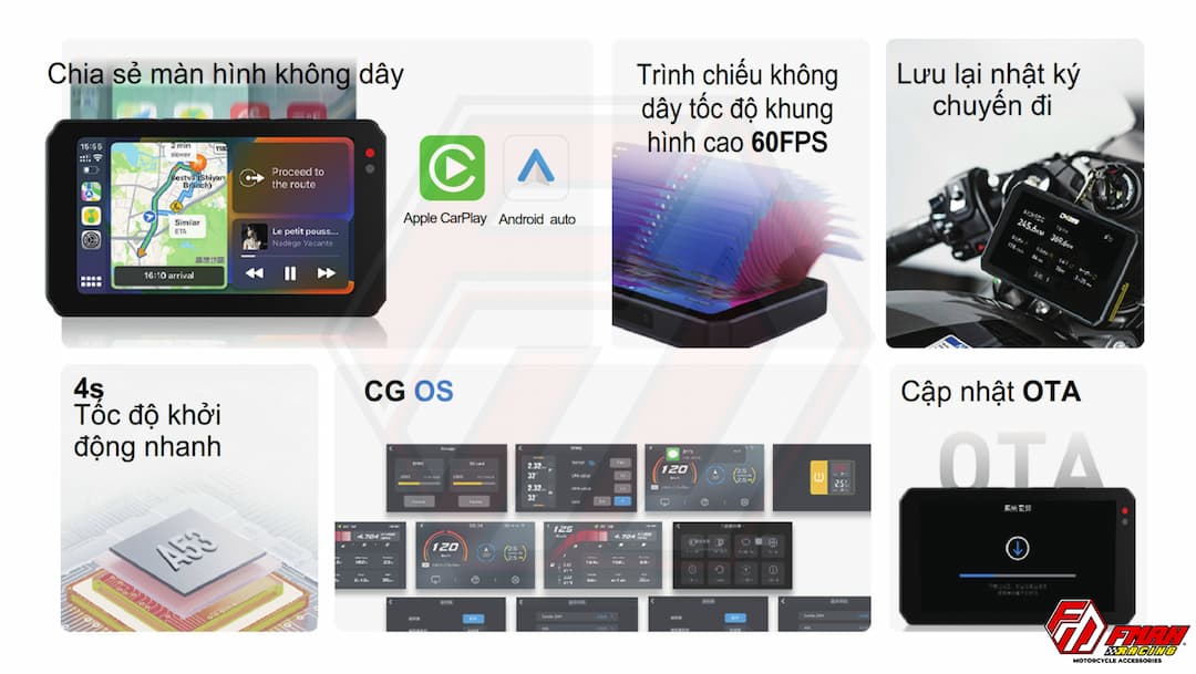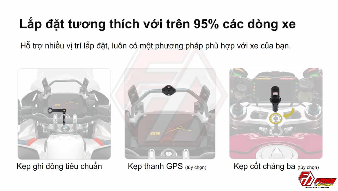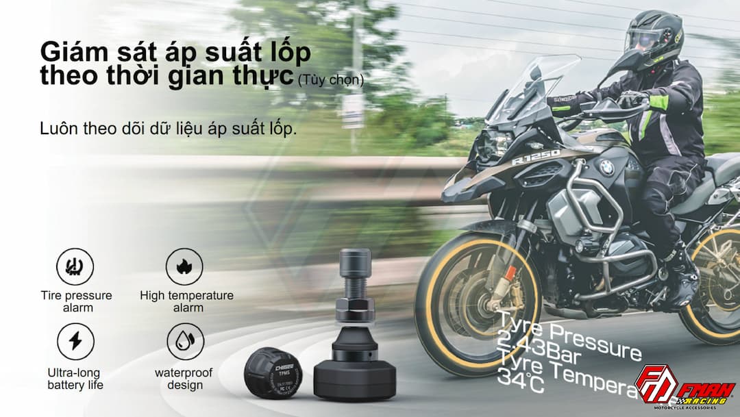 - Theo dõi, cảnh báo áp suất, nhiệt độ lốp trước và sau theo thời gian thực (tùy chọn)
