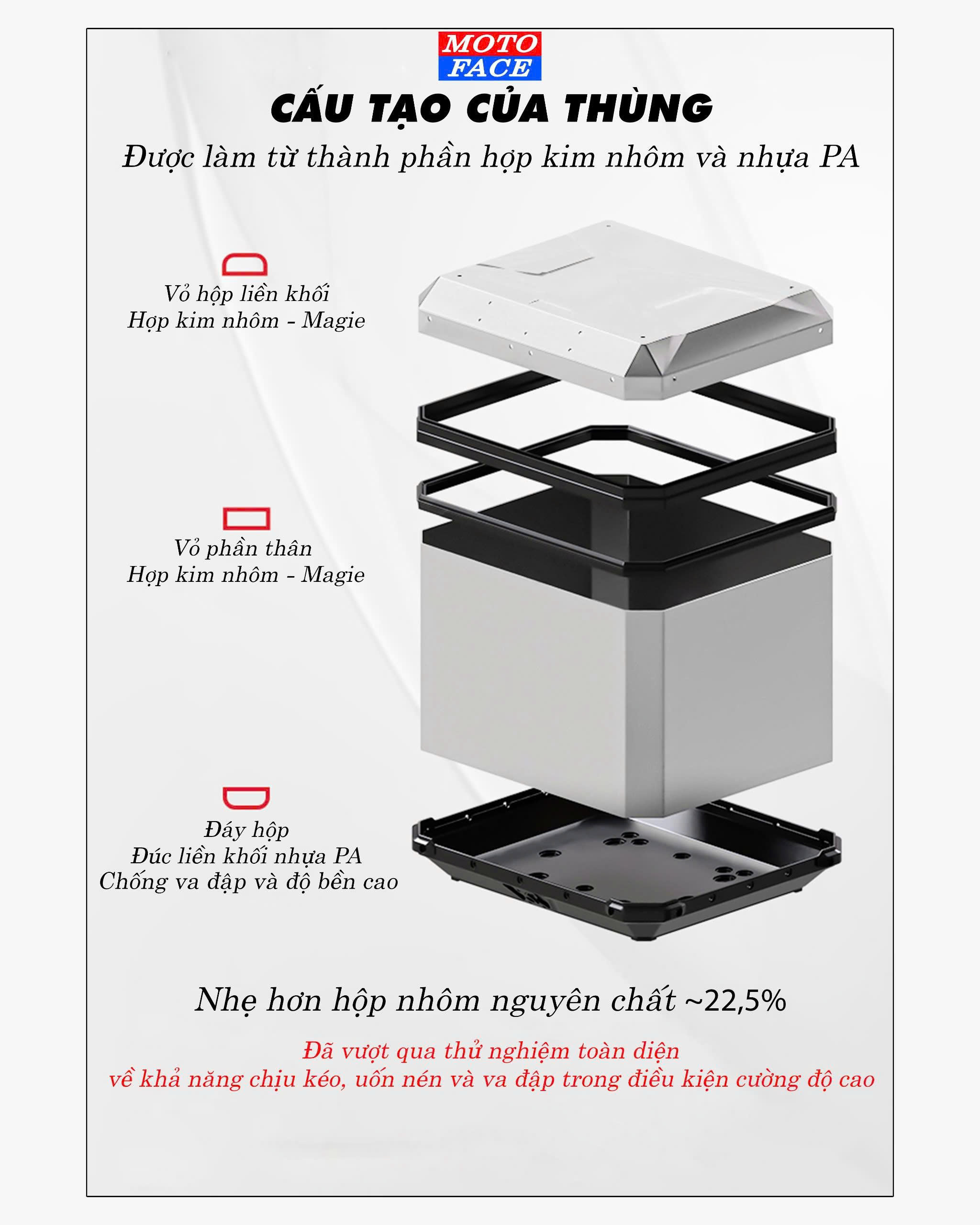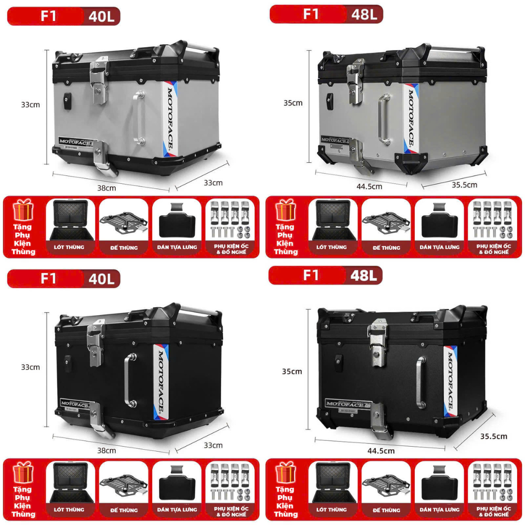 Thùng nhôm MOTOFACE F1 chính hãng 40L - 48L