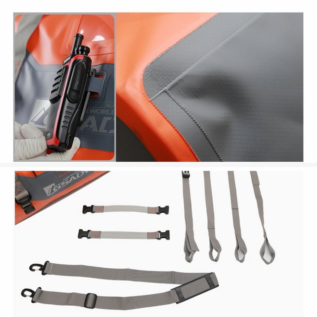 Chất liệu: Vải tổng hợp PVC 600- 1000D - Chống nước hoàn hảo, chống mài mòn, chịu được điều kiện thời tiết khắc nghiệt nhất!